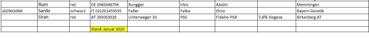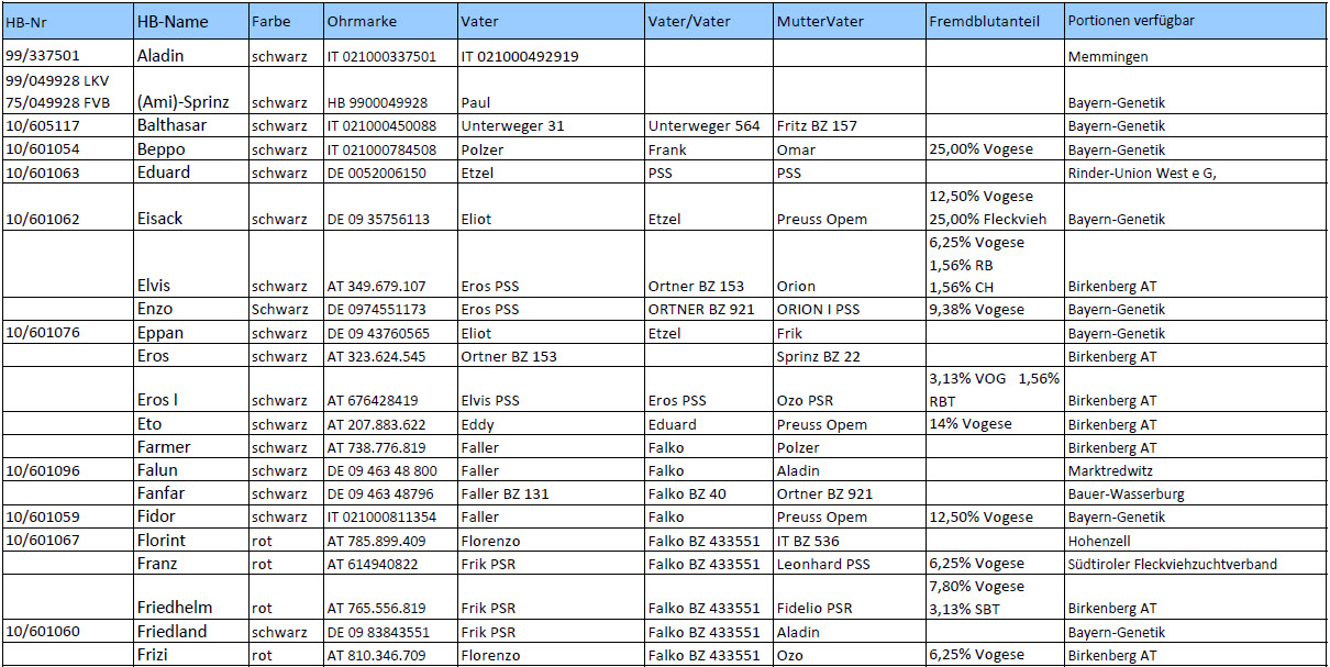 Liste der aktuellen Besamungsbullen